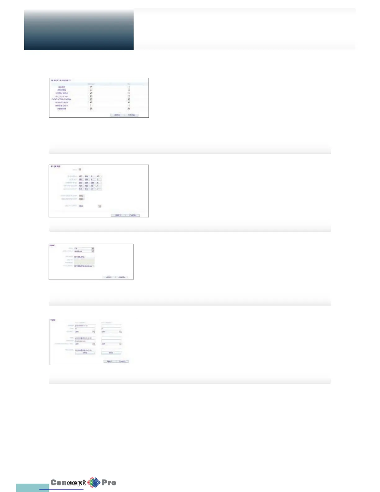 R For more information about each network entry, refer to “IP Setup”.