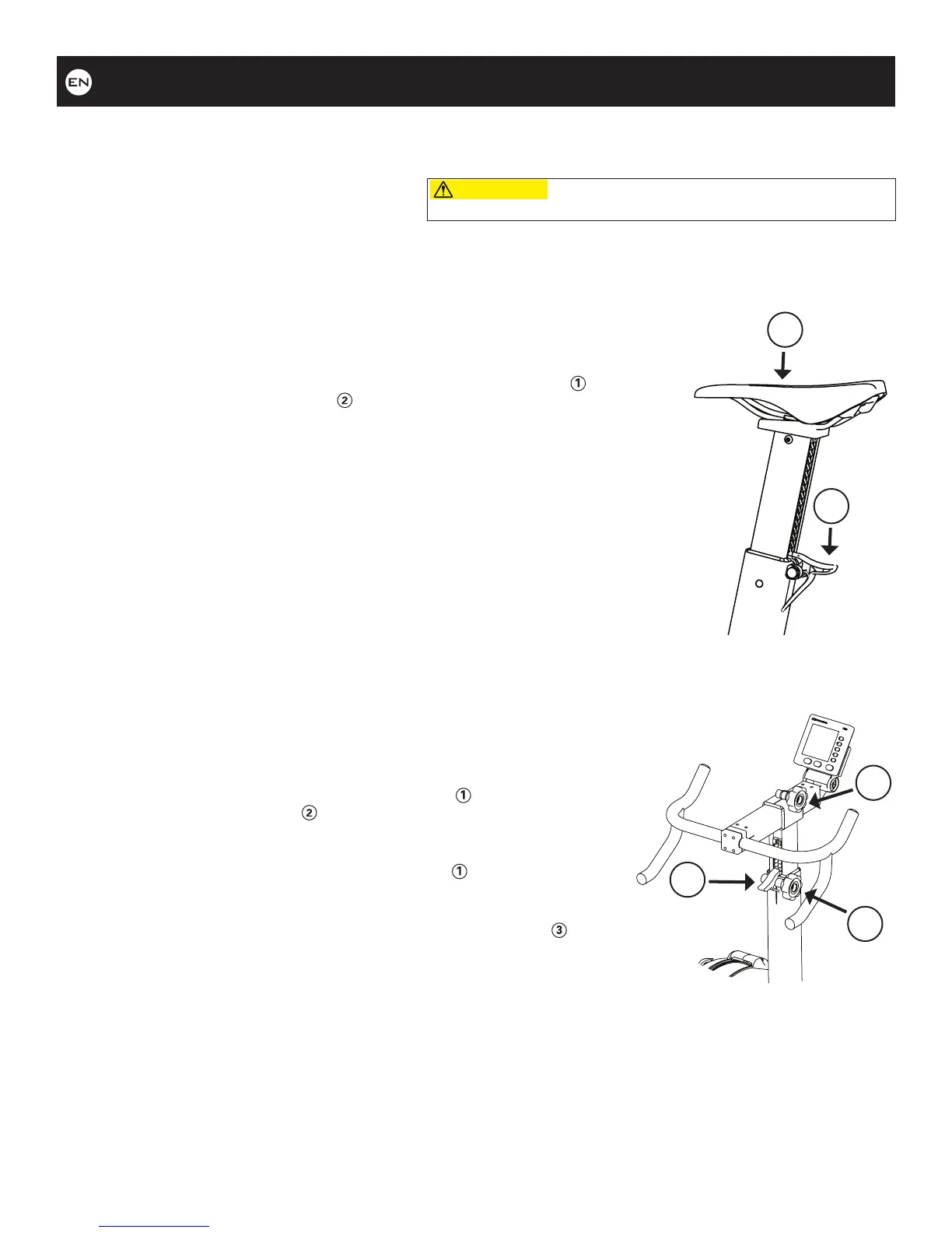 • To raise the handlebars: Loosen the adjustment knob and pull upwards to