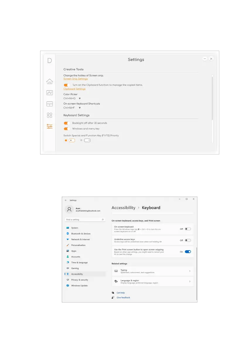 Scroll down to On-screen keyboard, access keys, and Print screen