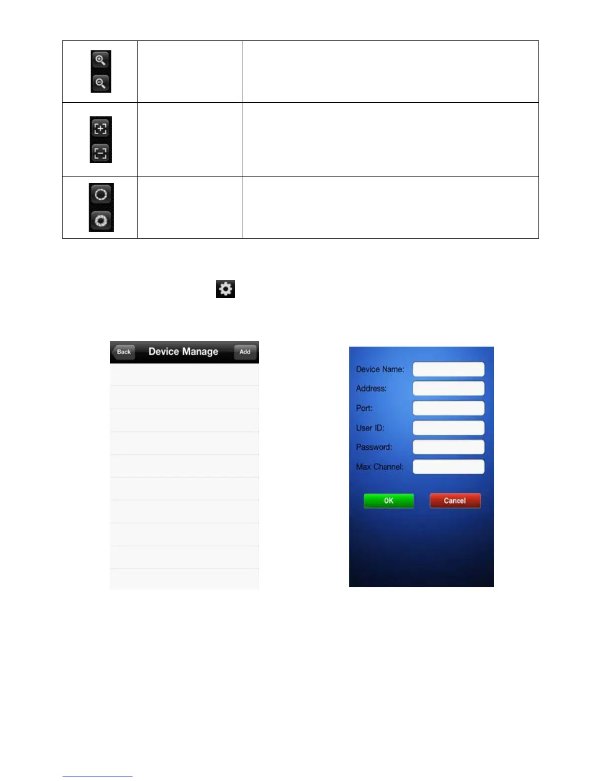 1. Please click the settings button and enter the device manage interface, as shown in the below image.