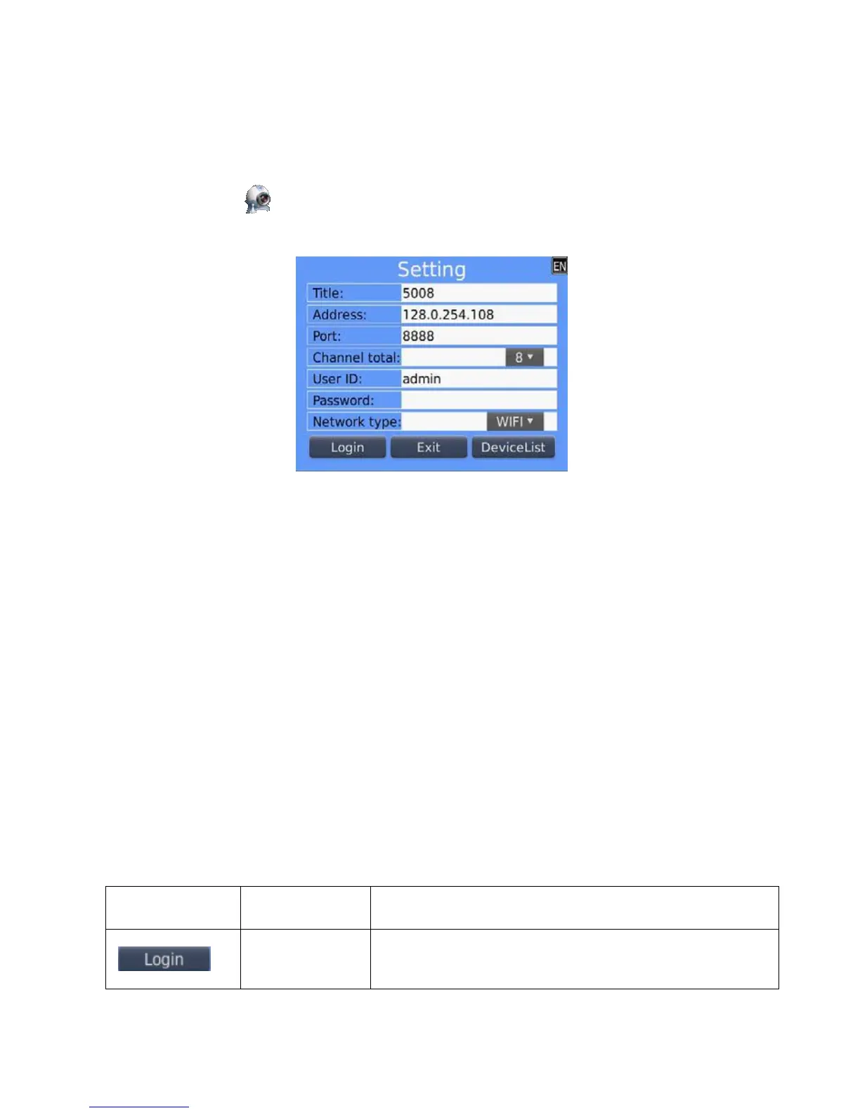 <User ID>:The username Owens view permissions of mobile phone(default username is admin).