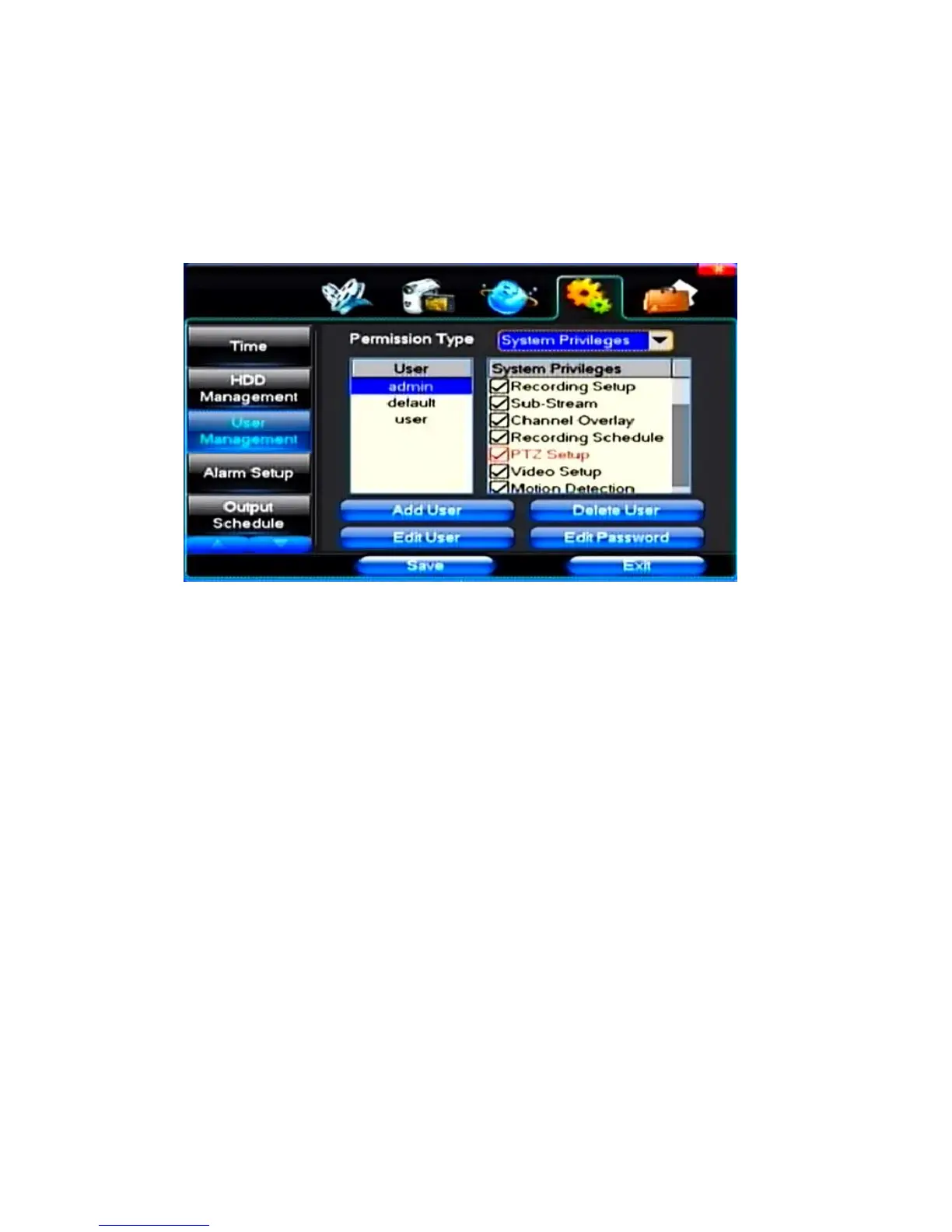 【Add User】Input need to add user, and input the account password and passwords. According to save button to add