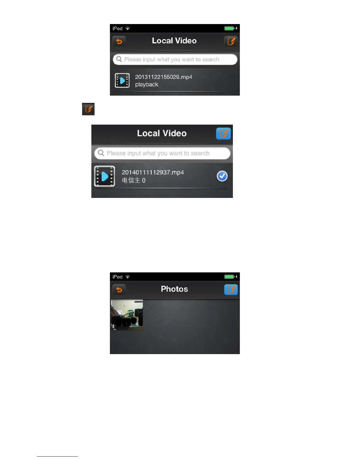 Click on the icon , the local playback video list change to editing states.