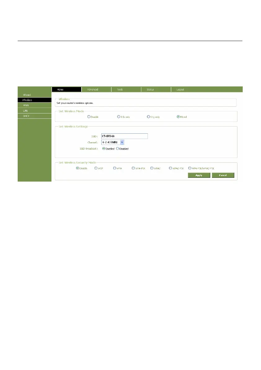 Click the Set Wireless Radio radio-button to allow the router to operate in the wireless