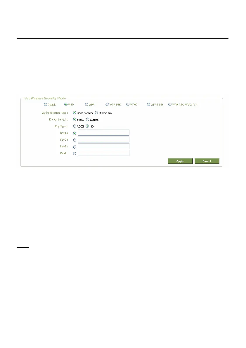 To bring up the Wireless Settings window for WEP, select WEP from the Set Wireless Security