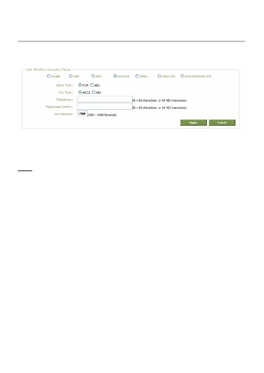 4. Enter the Passphrase you want to use for your WPA-PSK encryption (8 ~ 63 characters ASCII,