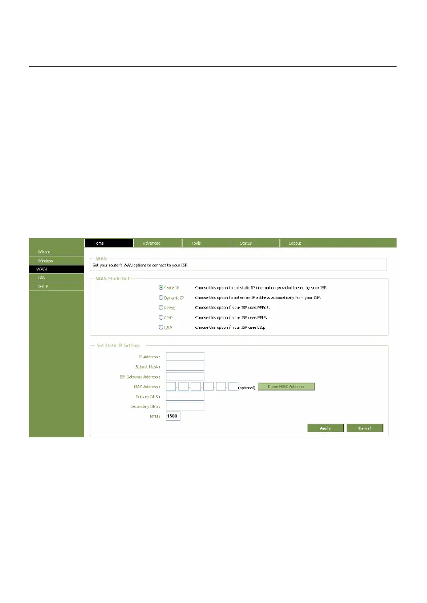 connection. Follow the instruction below to configure the Router to use Static IP Address assignment