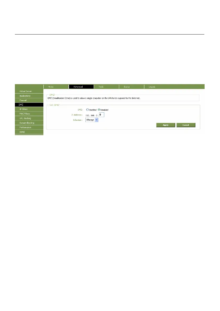 or device on your LAN, and click the Apply button. To remove DMZ status from the designated IP