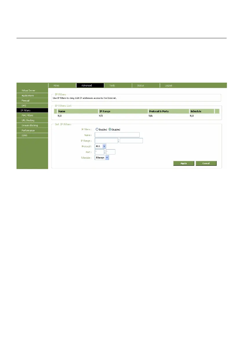 based on IP address and TCP/UDP port. Configure the filter rules as desired and click the Apply
