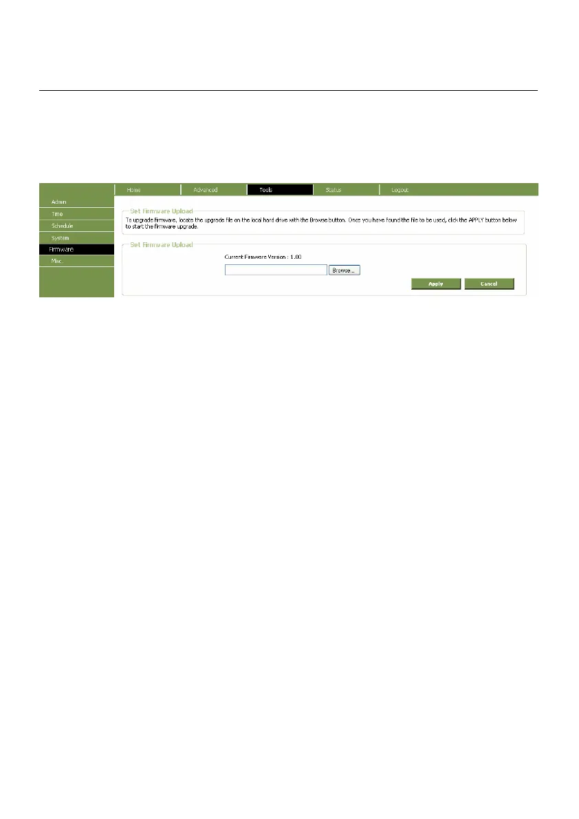 To upgrade firmware to the router, type in the name and path of the file, or click on the Browse