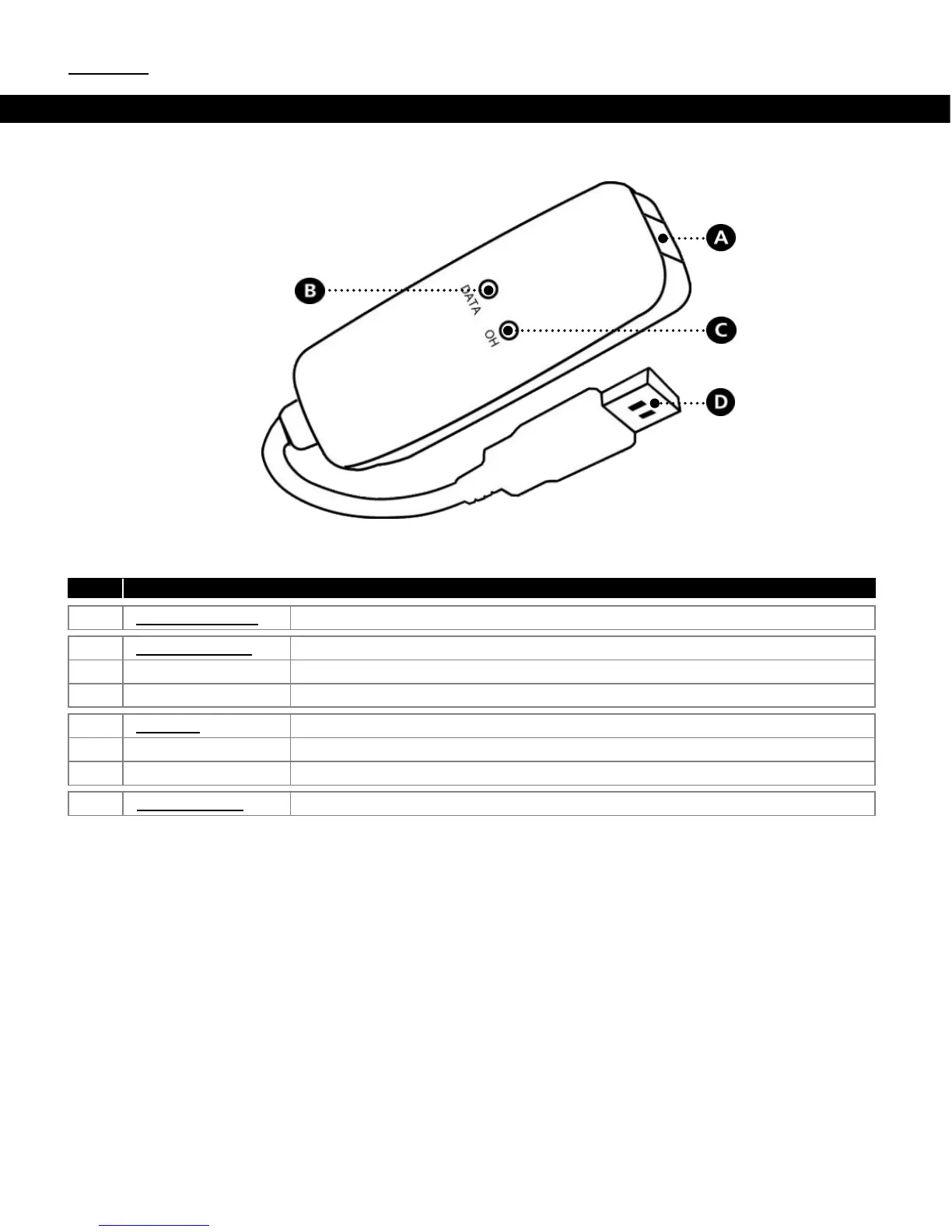La imagen siguiente describe todos los elementos del módem USB 56K: