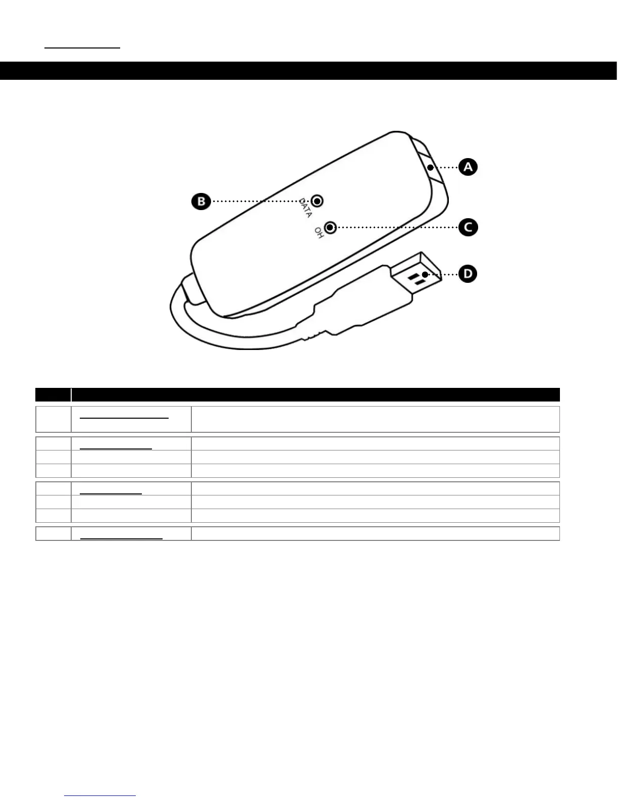 In de onderstaande afbeelding worden plaats en functie van de verschillende onderdelen van het 56K USB