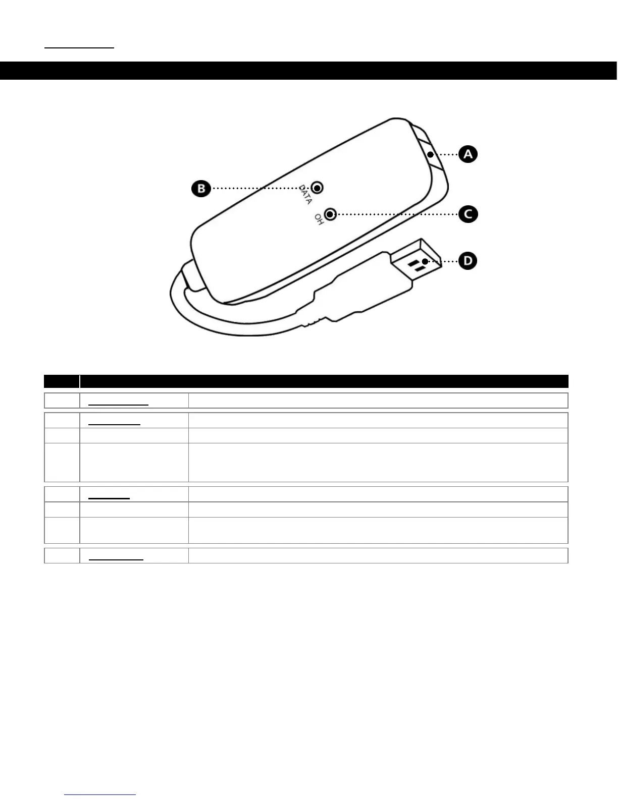 A imagem seguinte de explicação do dispositivo descreve todos os elementos do modem USB 56K: