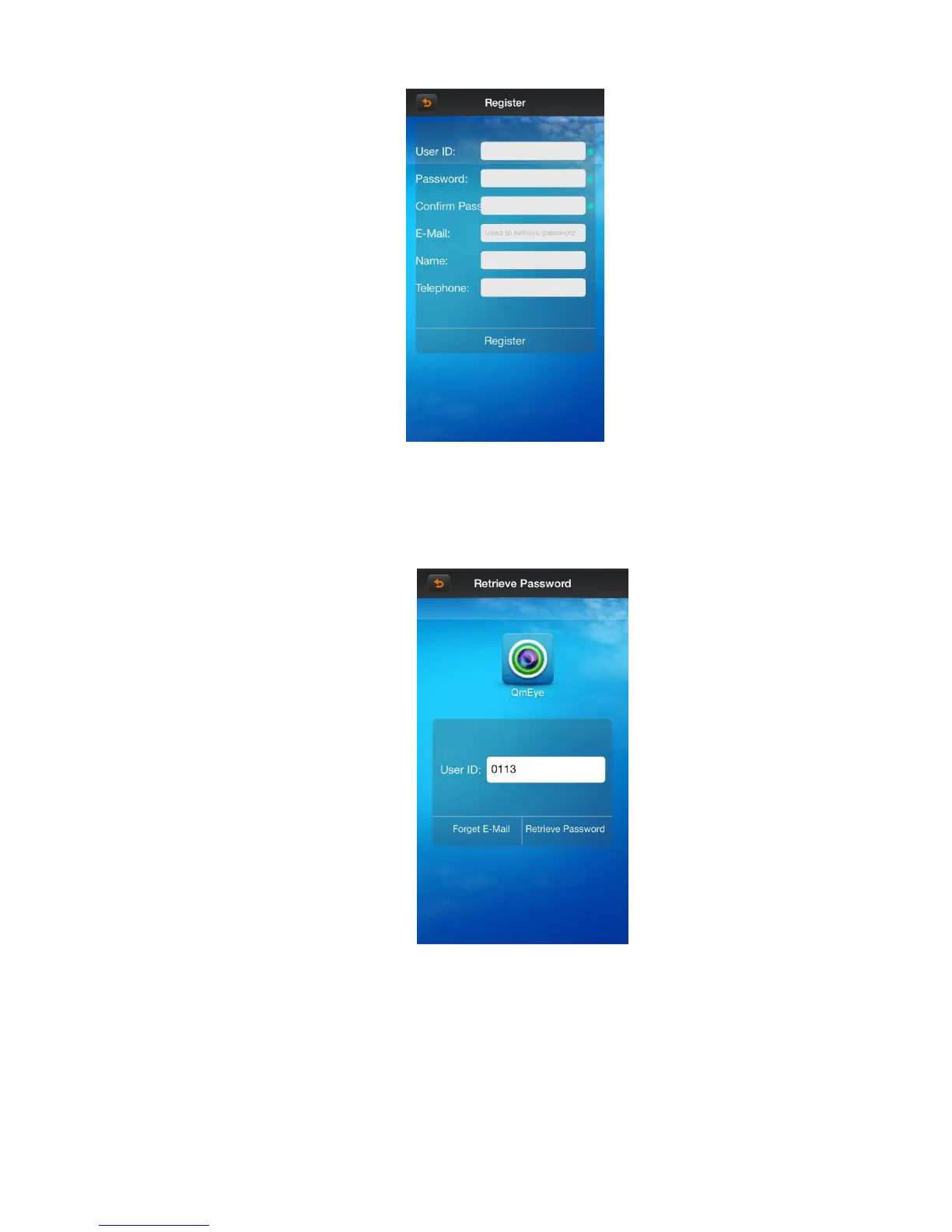 On the register clicking the button “login” and jump to “Retrieve password” interface.