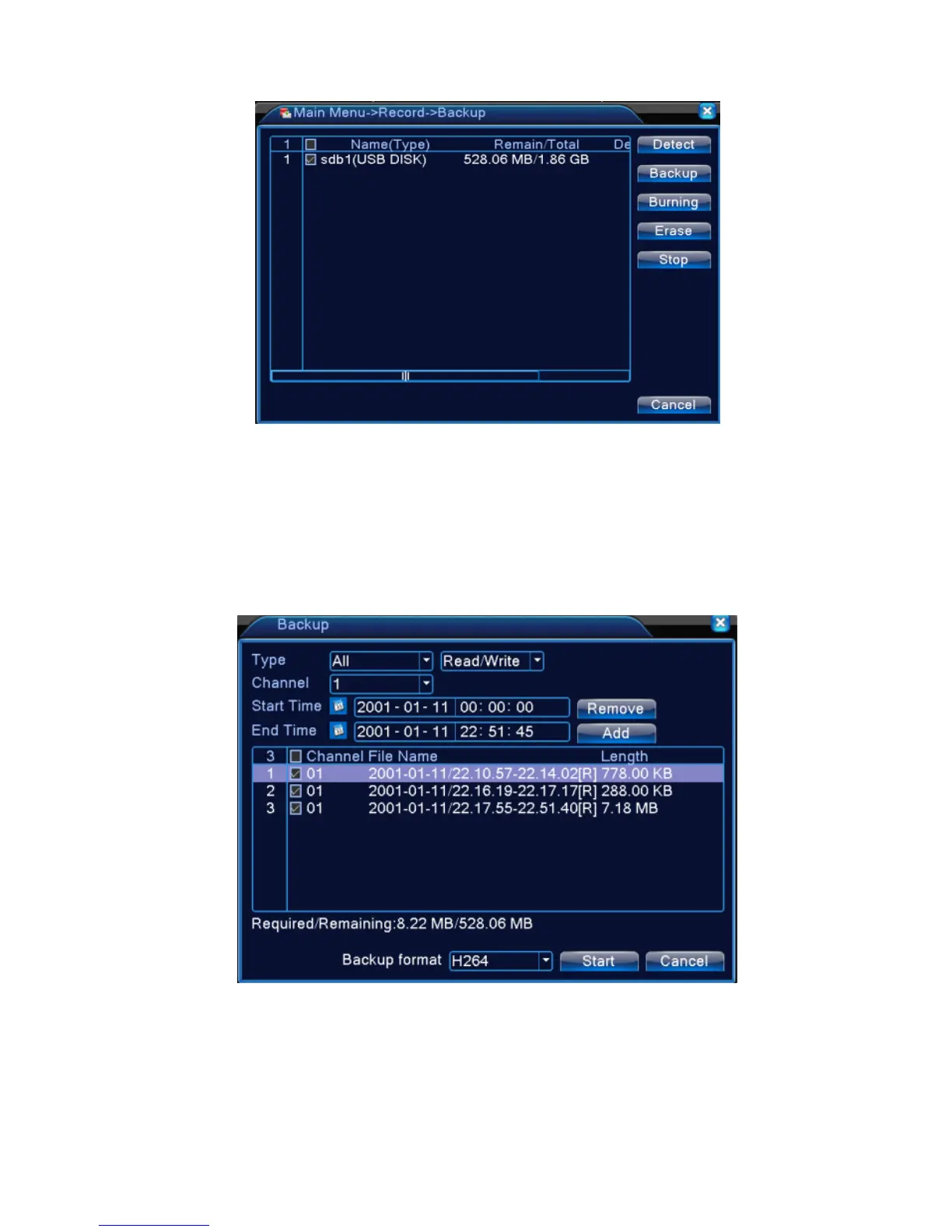 【Detect】Detect the storage connected with the DVR such as hard disk or universal disk.