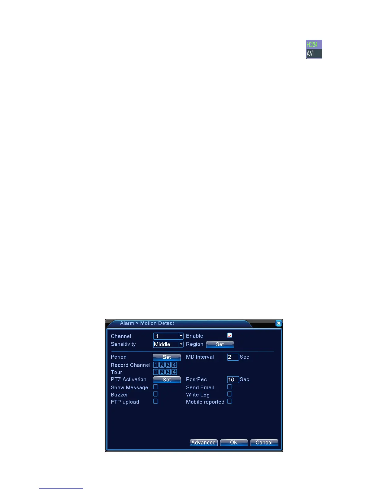 When system detects the motion signal that reaches the set sensitivity, the motion detect alarm is on