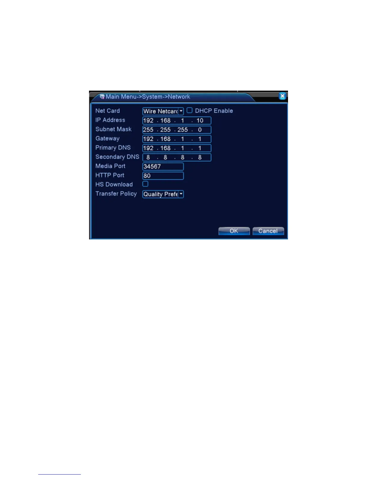 【IP address】Set the IP address. Default: 192.168.1.10.