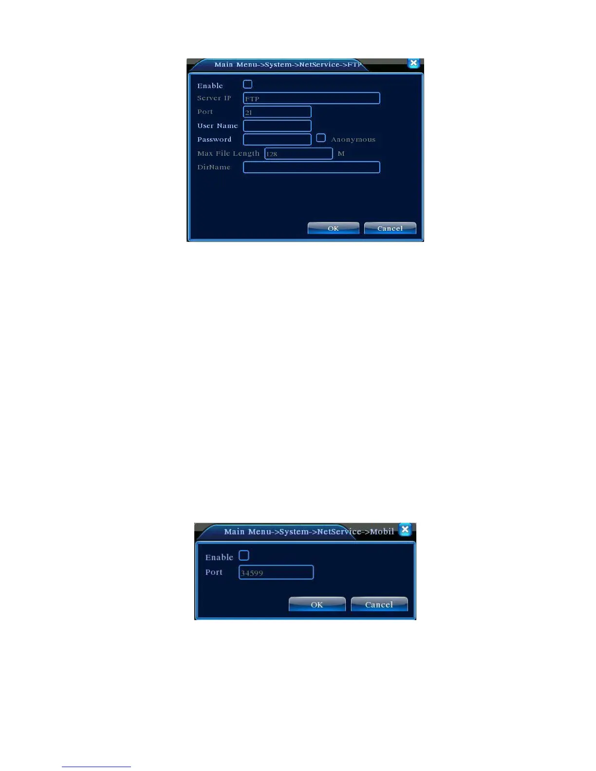 【User Name】User name of FTP