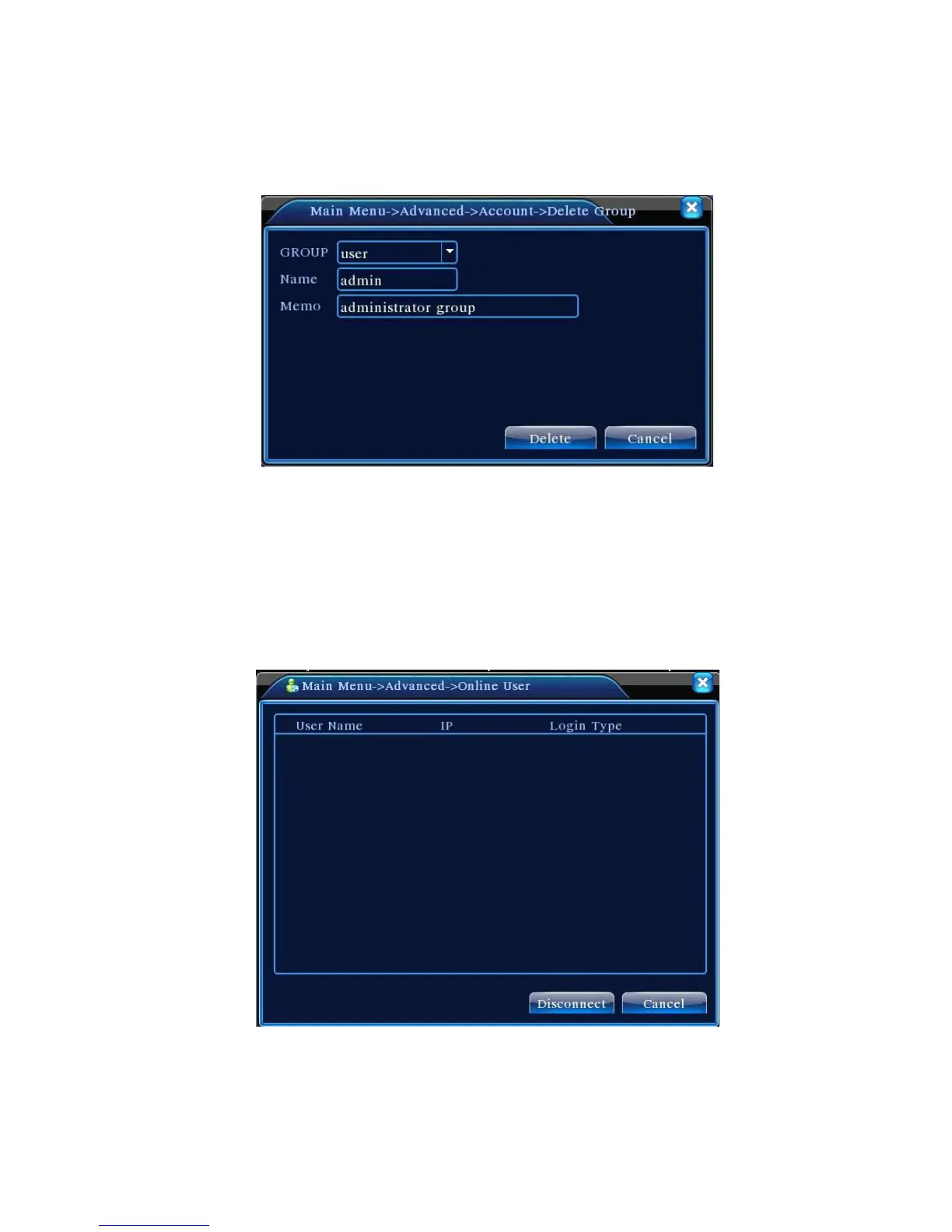 【Delete User】Delete the current user. Choose the user and click delete user button.