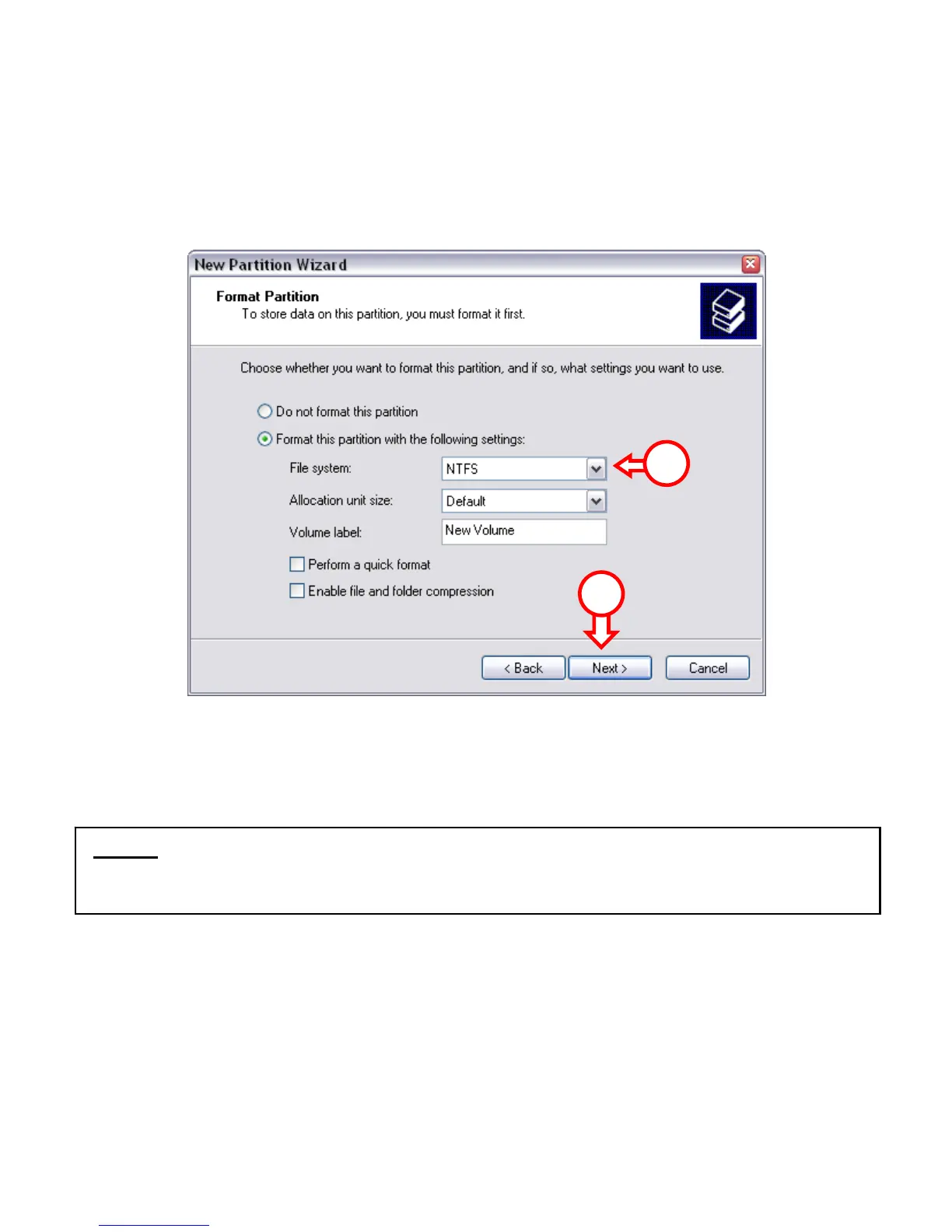 “File System” (Sistema file) si può scegliere fra NTFS o FAT32. È anche possibile