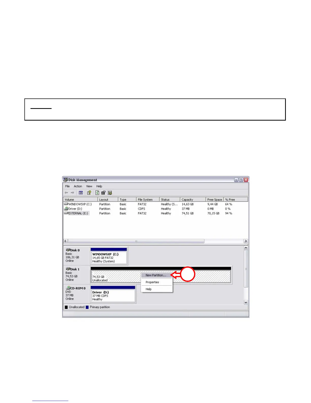 voor het maken van een nieuwe partitie voor de optie “Nieuwe Partitie...”.