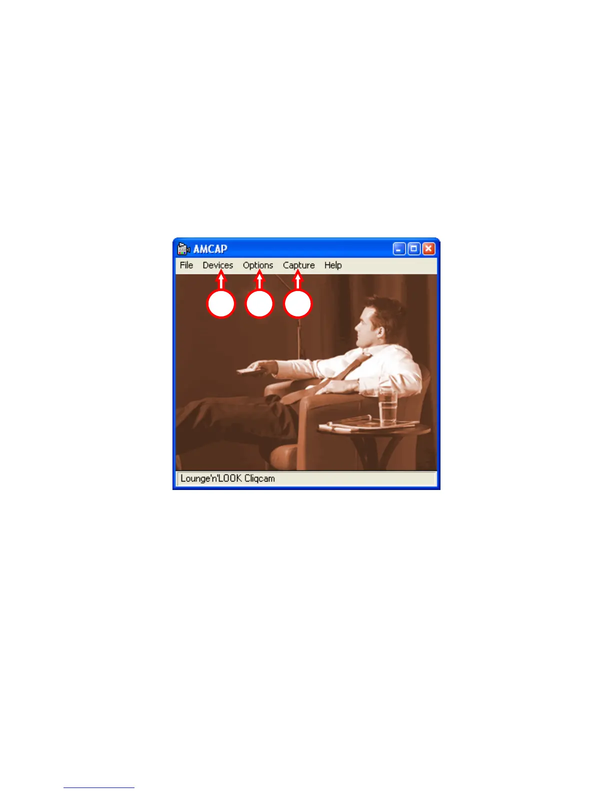 Para executar o programa AMCAP, clique em ‘Start’ (Iniciar), ‘Programs’ (Programas),