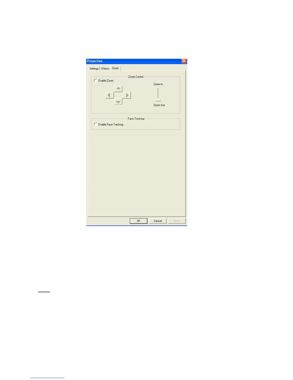 In the “Zoon / Face Tracking” page, you can manually zoom your webcam image, or use the face