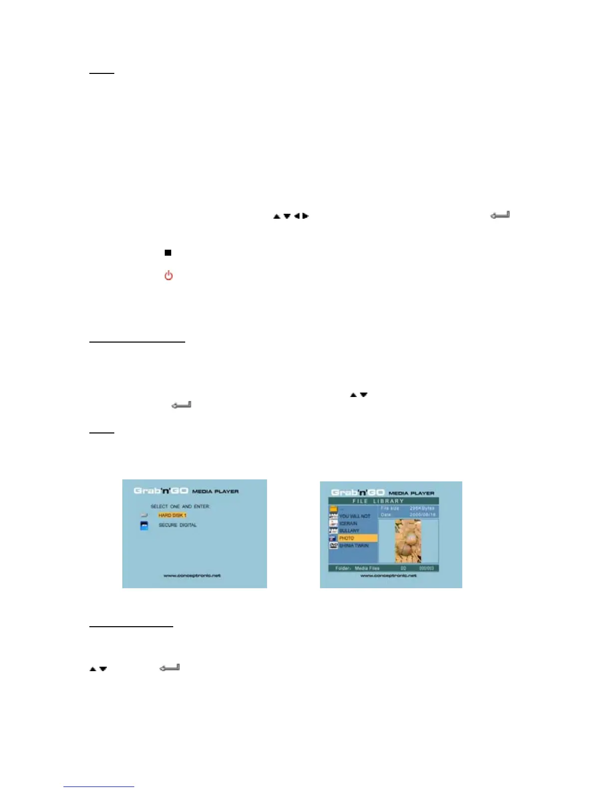 ENTER para confirmar a selecção (entrar na biblioteca multimédia, entrar na pasta de ficheiros