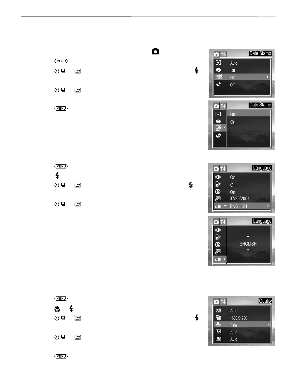 Time shown on the pictures, set the Date Stamp to ON mode.