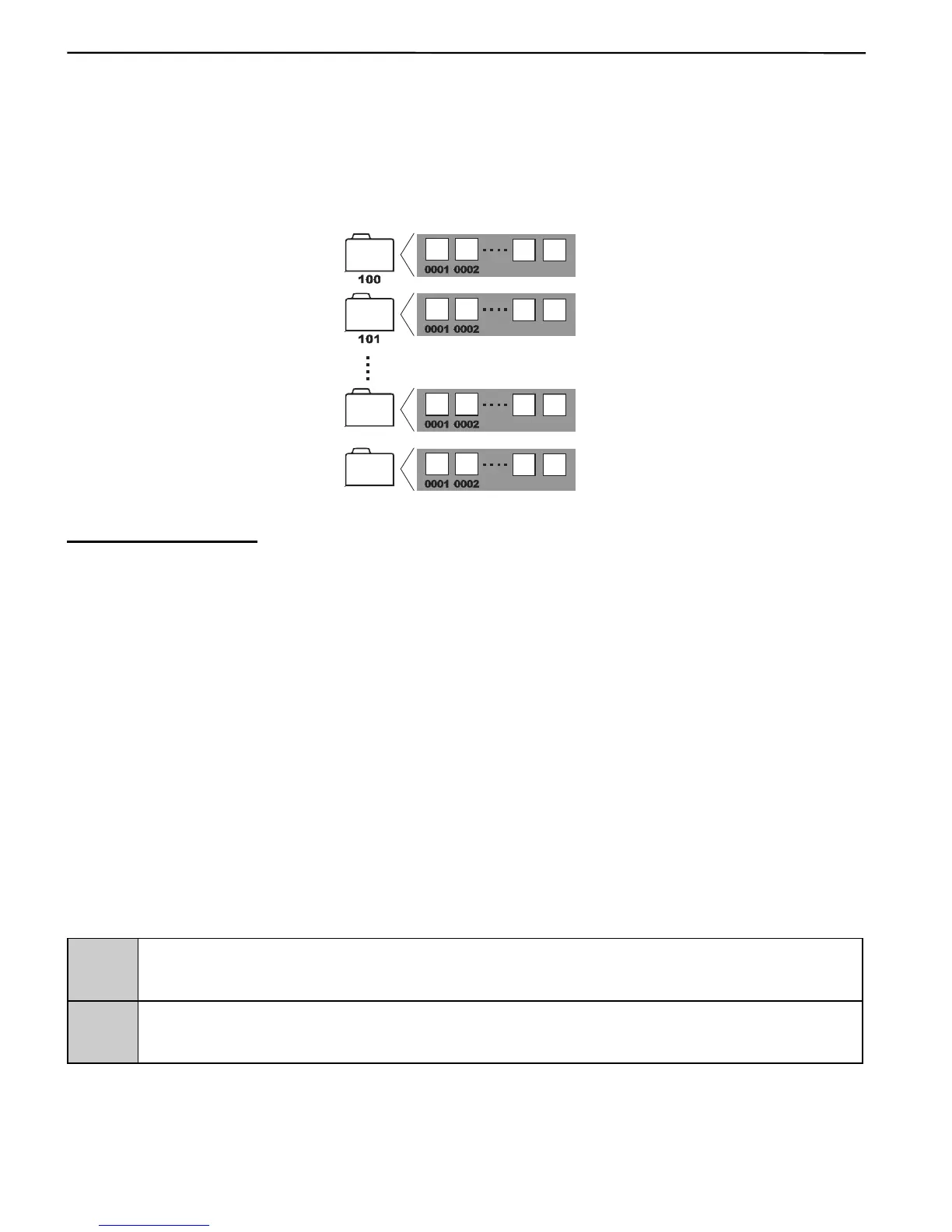 Images or video clips are assigned file numbers from 0001 to 9999, and folders are assigned folder