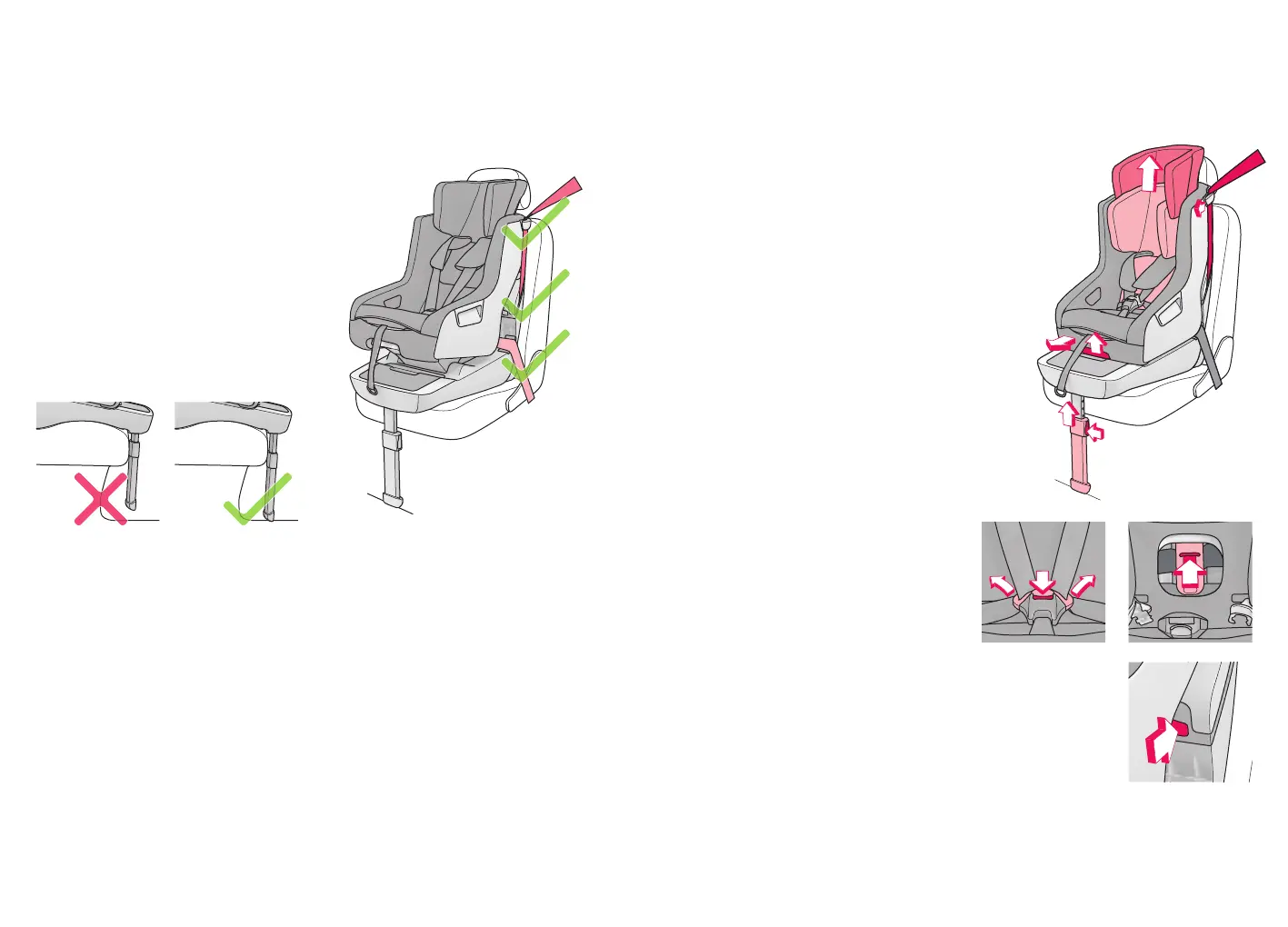 The seat belts must run through the belt guides marked in red on the seat.
