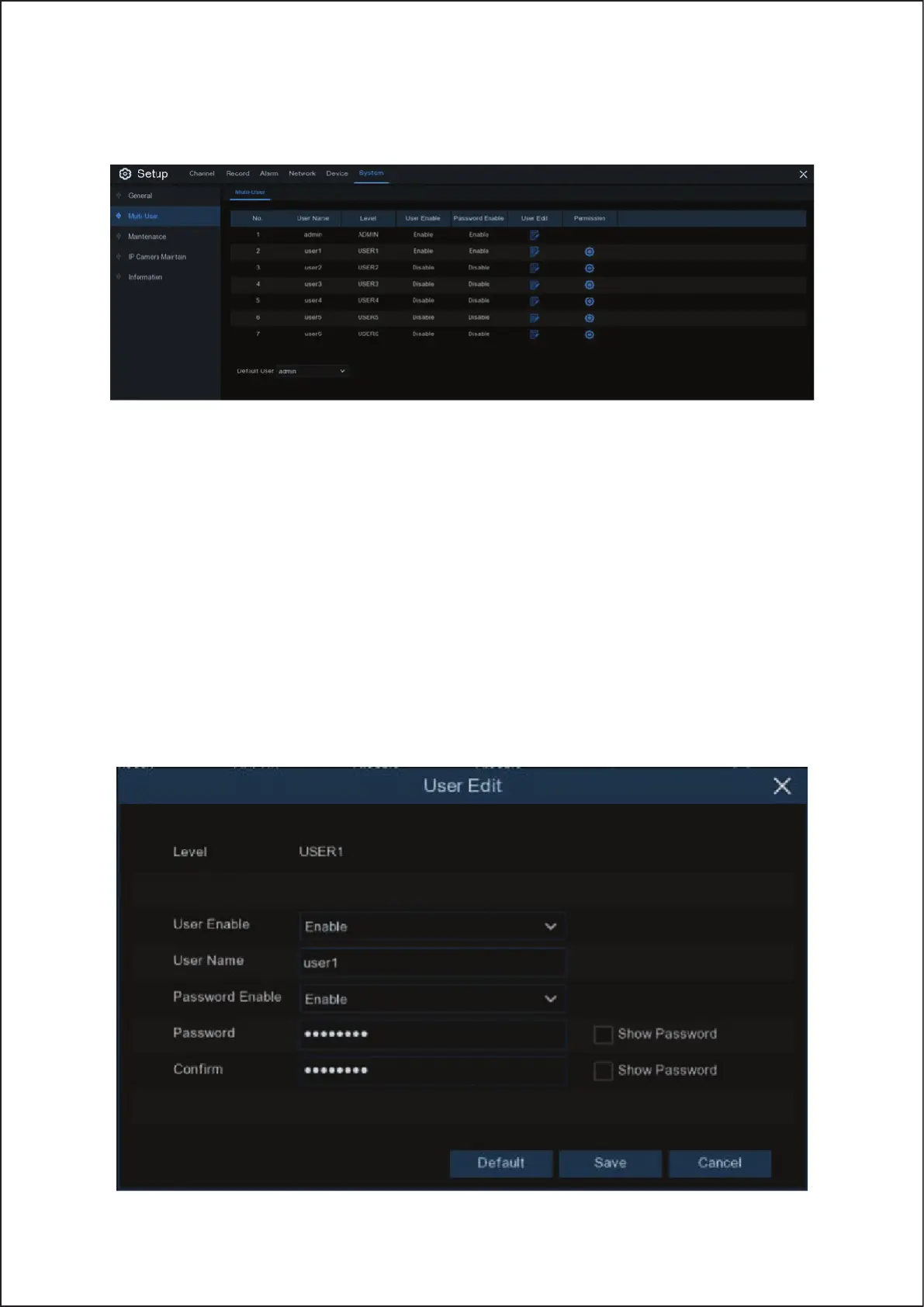 • USER — Normal User: Users only have access to live viewing, search, playback, and other functions. You may set