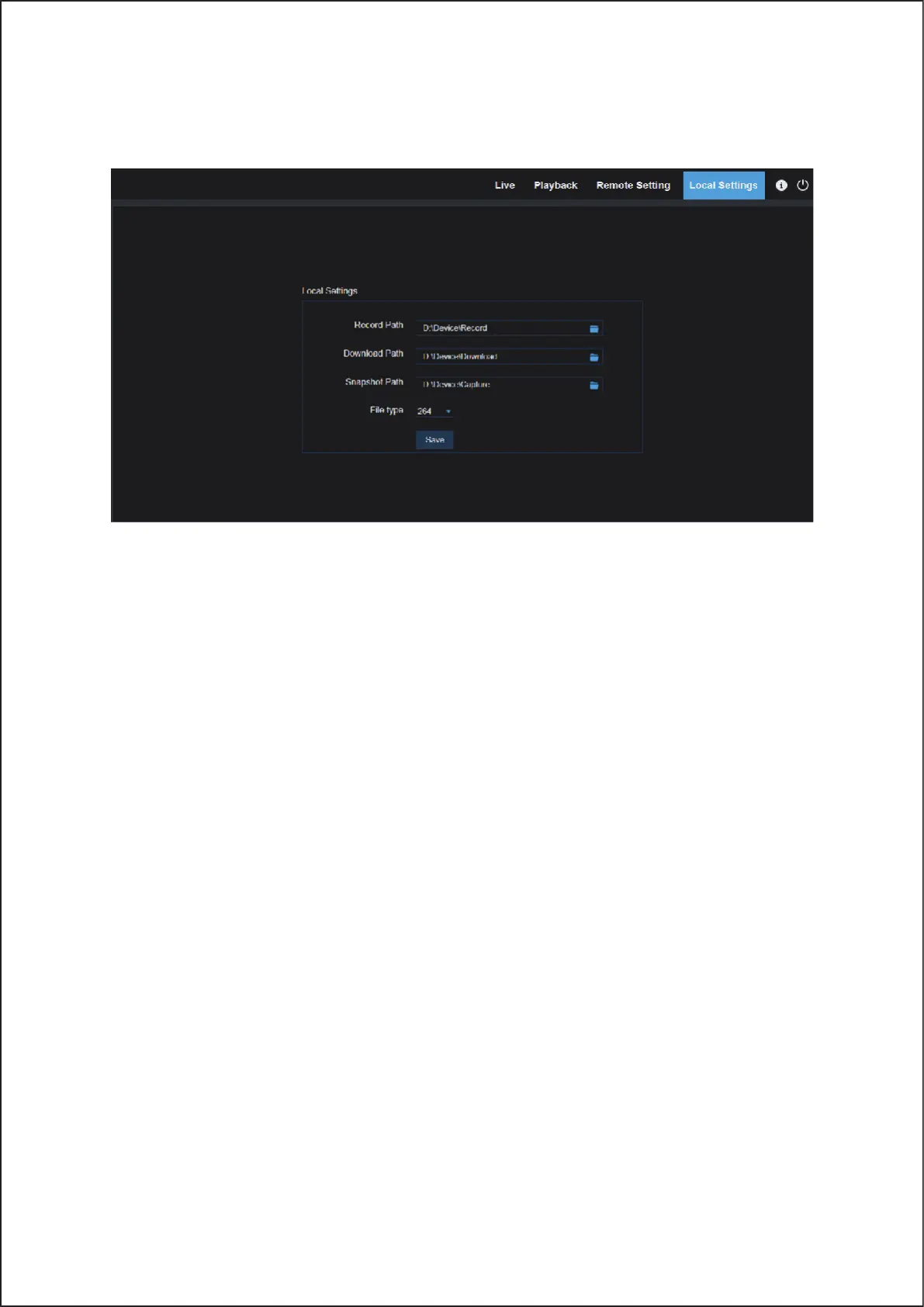 • Record Path: Set the path to save manual recordings on your PC’s local drive.