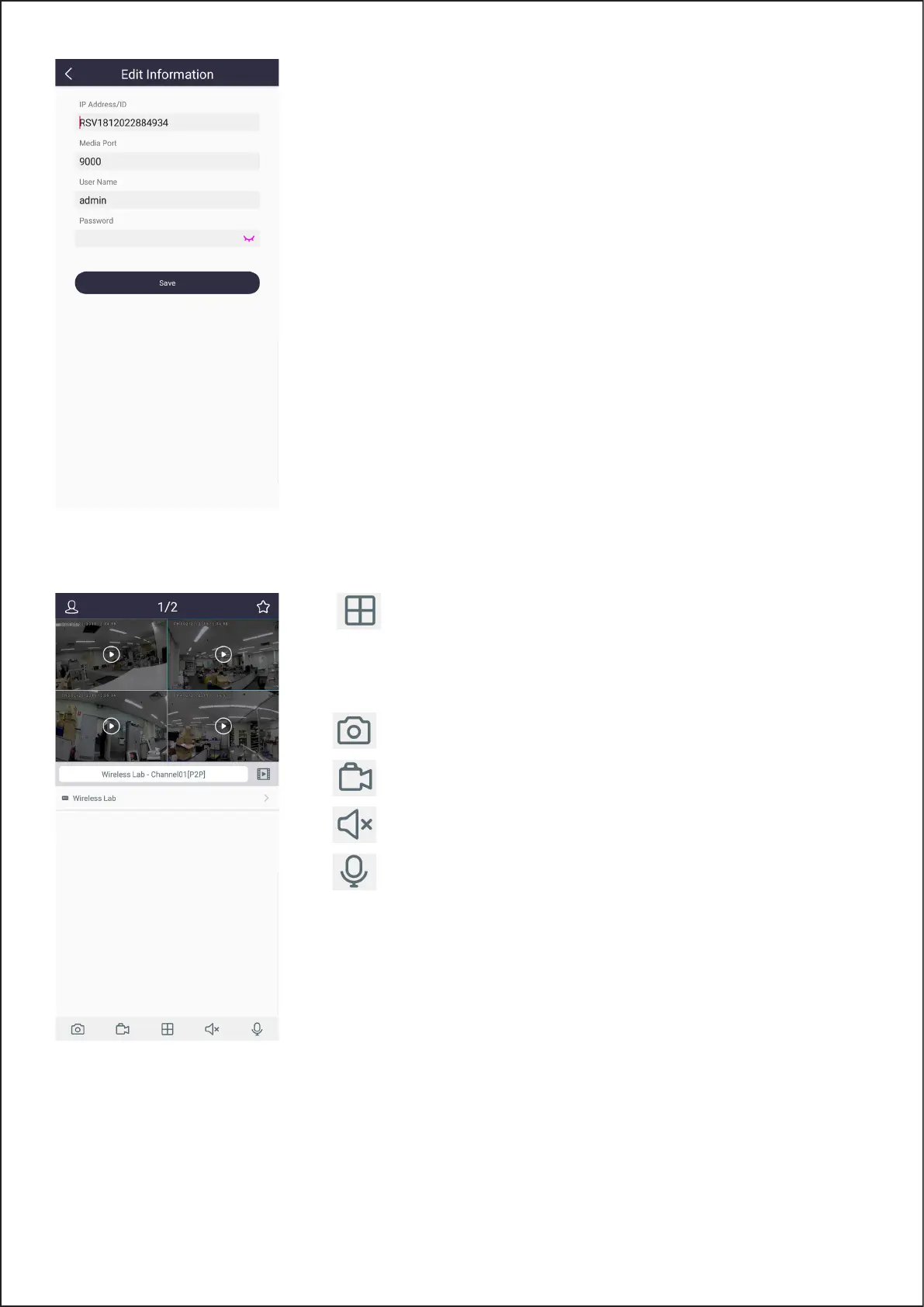 4) After all settings completed, touch Save to save, the app will turn to Live view display if the device has connected