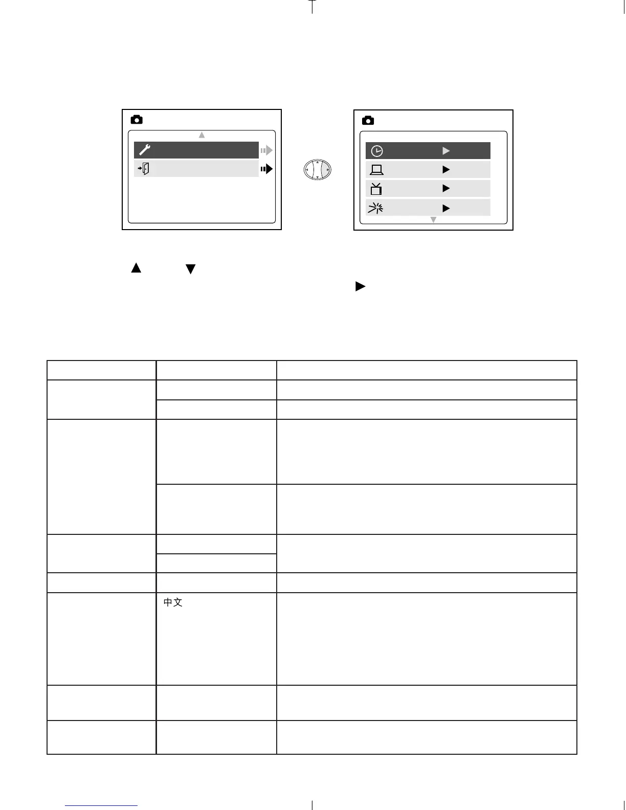 3. Appuyez sur la flèche verticale pour sélectionner une option et passer à la