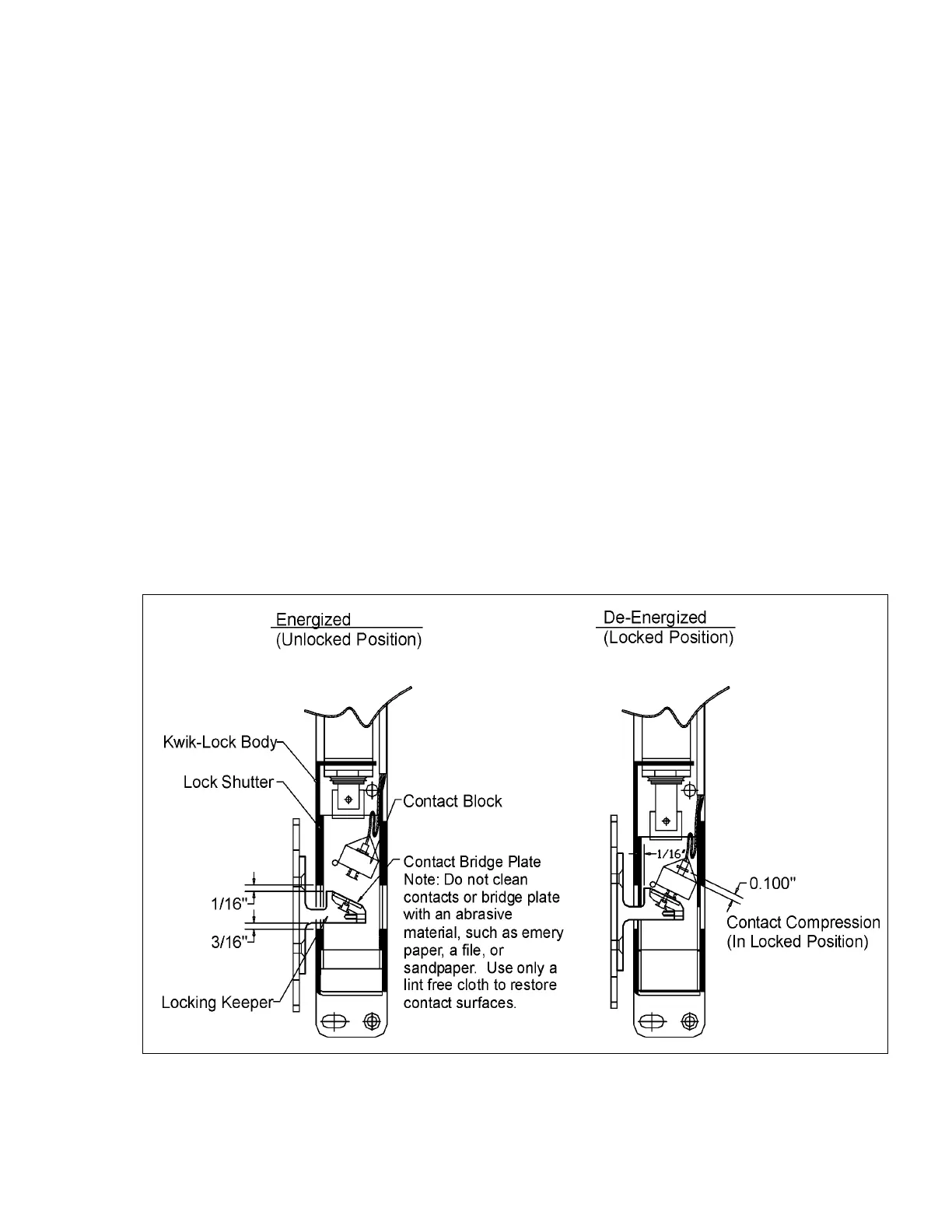) Upon lift arrival at the floor, the lock retracts electrically to fully unlock th1