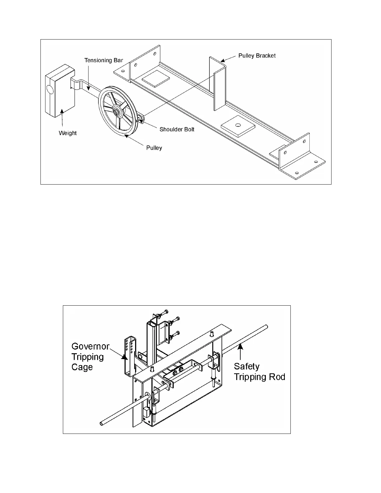 7) Attach the tensioning bar (complete with weight), to the pulley bracket using the 3/8”