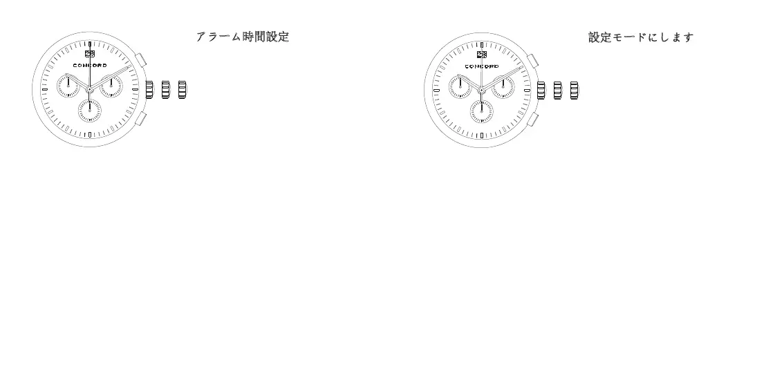 6時位置のサブカウンターの針が、設定されたアラーム時間を表示します。
