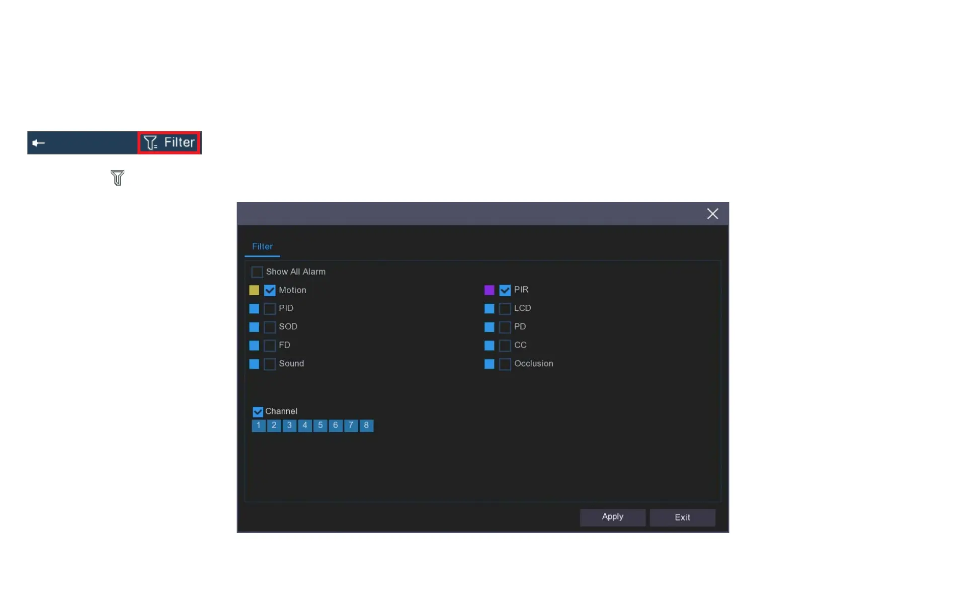 If you click the icon above the recent events a menu will appear, you can then filter the recent events to only show a particular type or