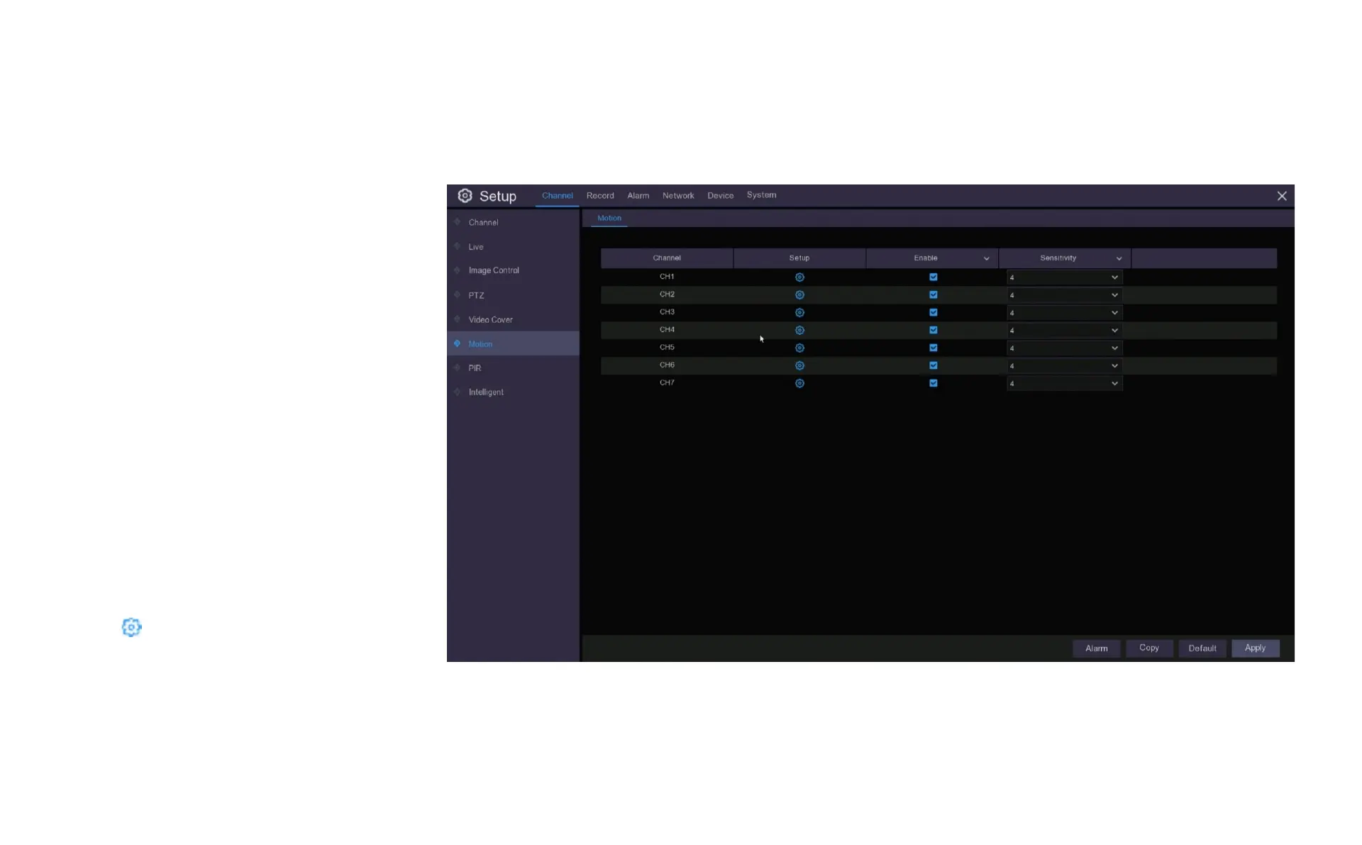 This menu allows you to configure motion