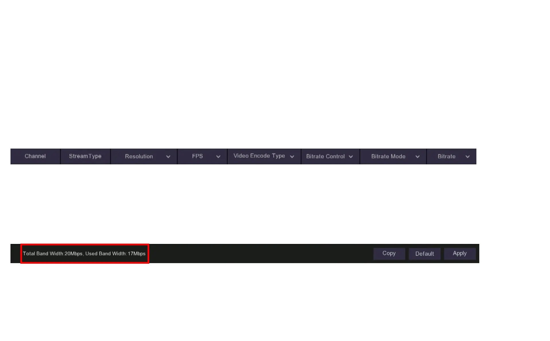 Total Band Width: Your DVR has a maximum bandwidth that it can process, depending on the model and the number of channels being used this