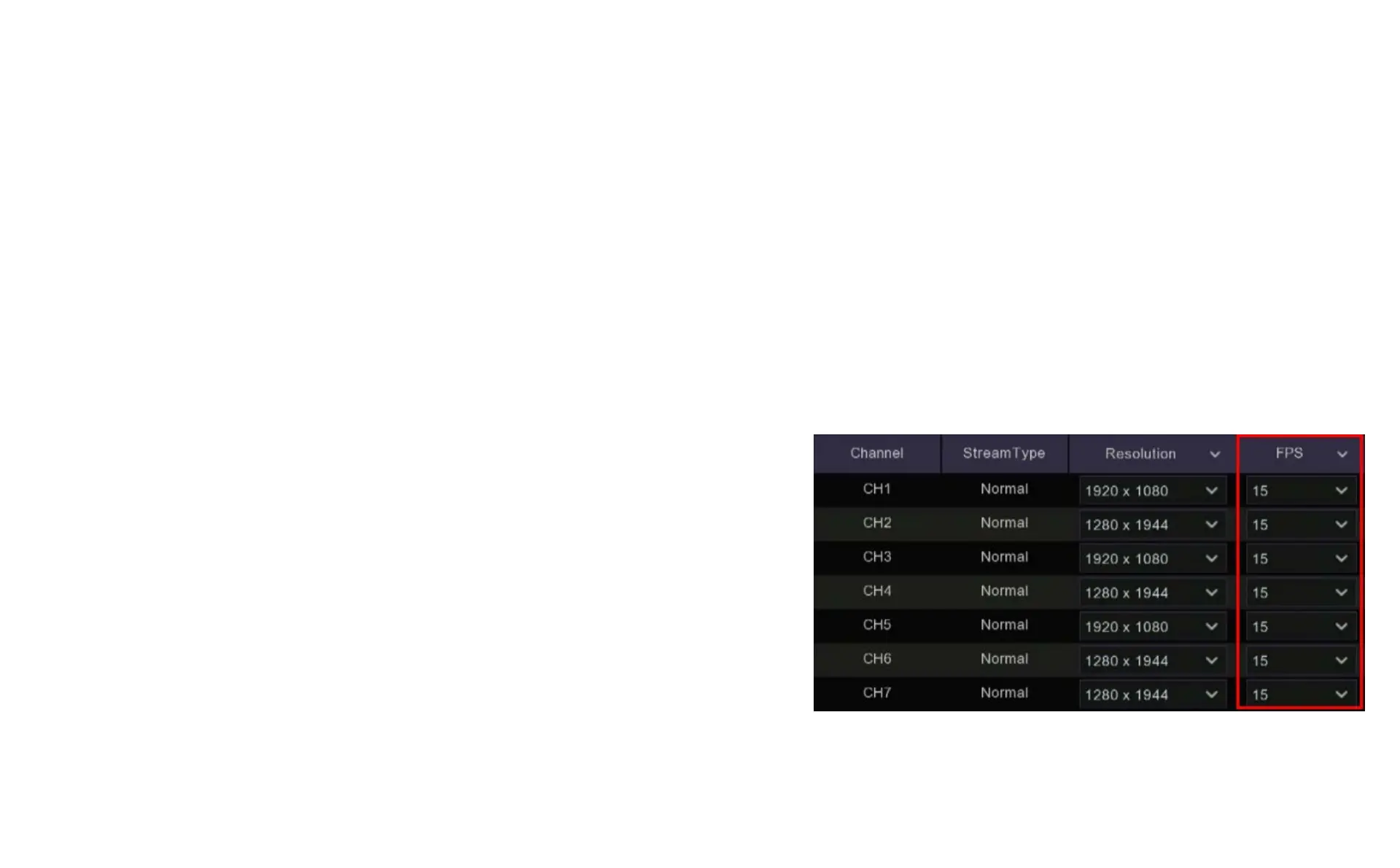 Frame rate is the amount of individual images that are put together to make one second of video or frames per second (FPS). In CCTV cameras you can adjust