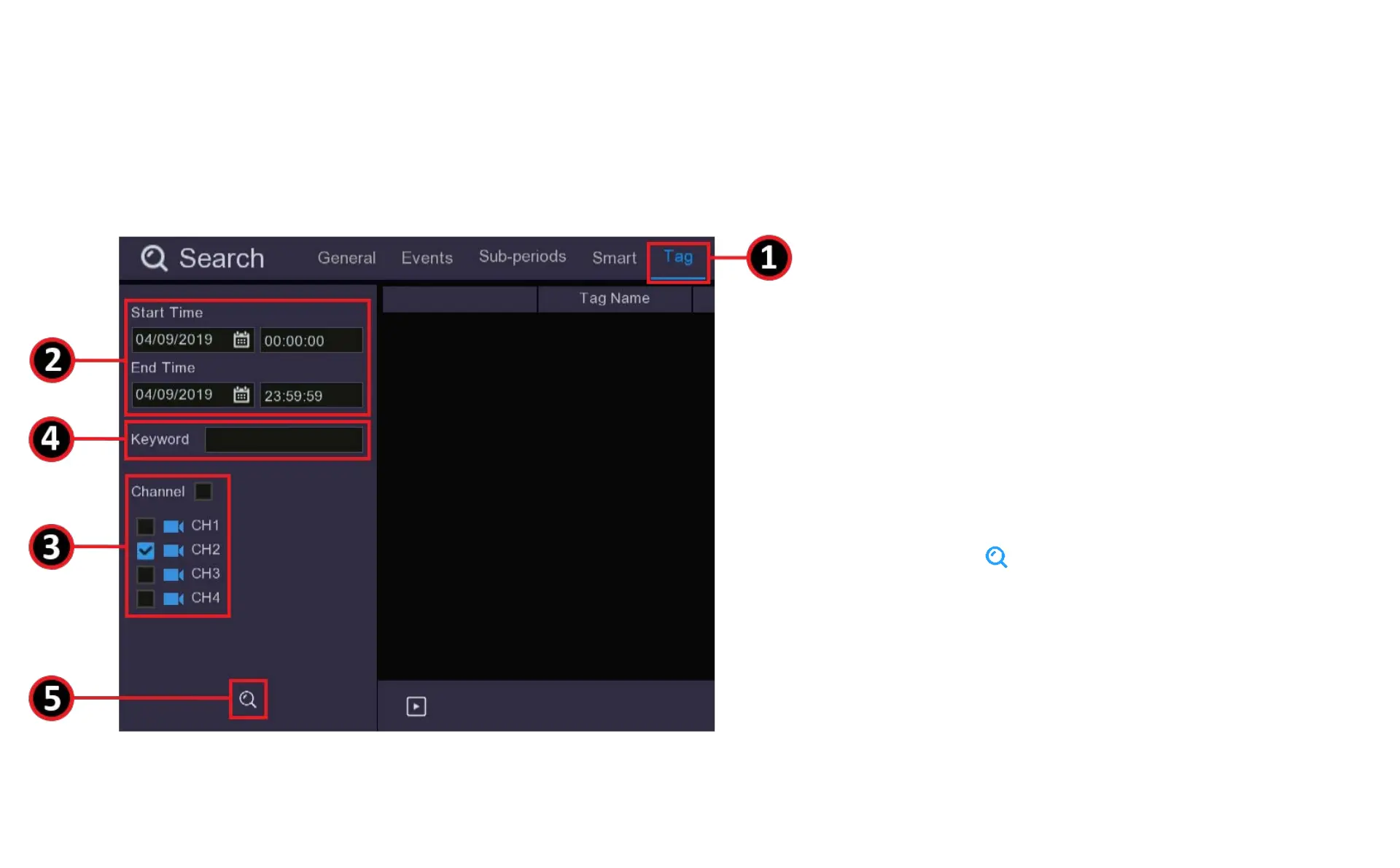 7. To view your tagged recordings first the Tag sub-menu in the Search menu.