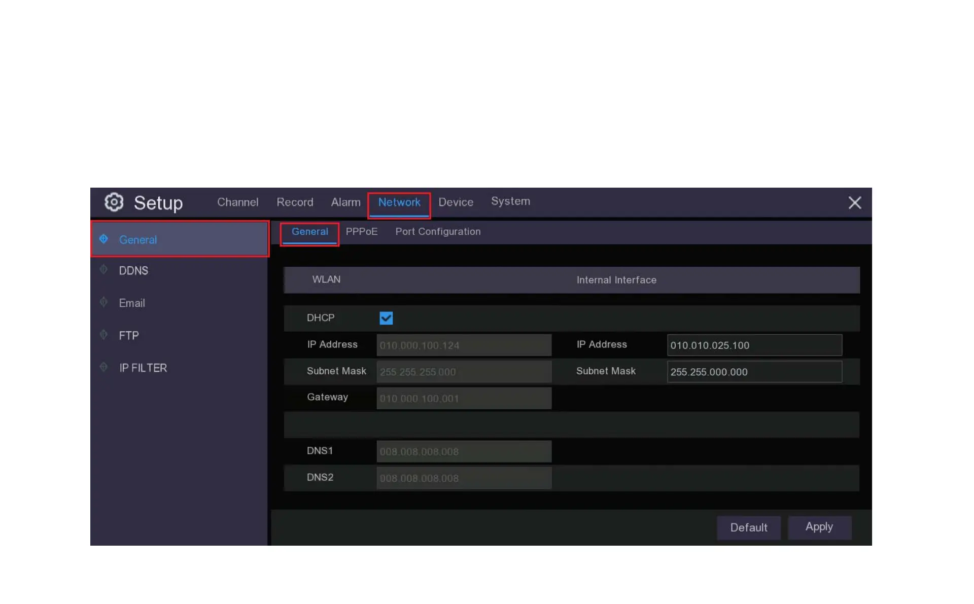 CONCORD QV5200 - Chapter 9 Network Setup; 9.1 General