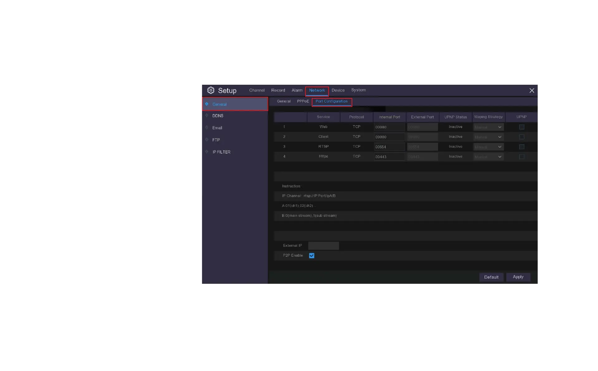 RTSP Port: Default is 554, if the default