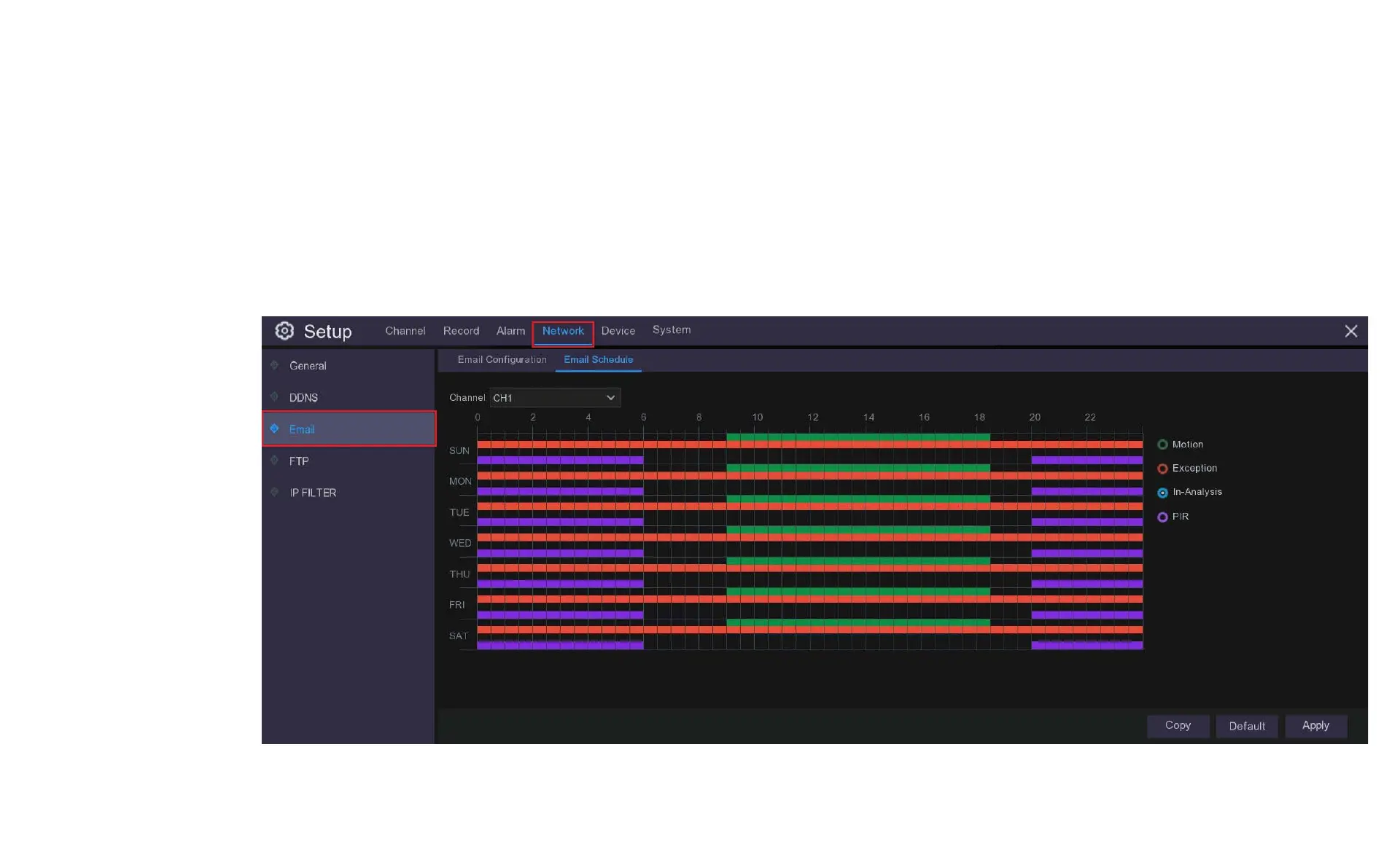 You need to configure the schedule to fully implement the email notification. The various email triggers are shown as color coded rings on the right hand