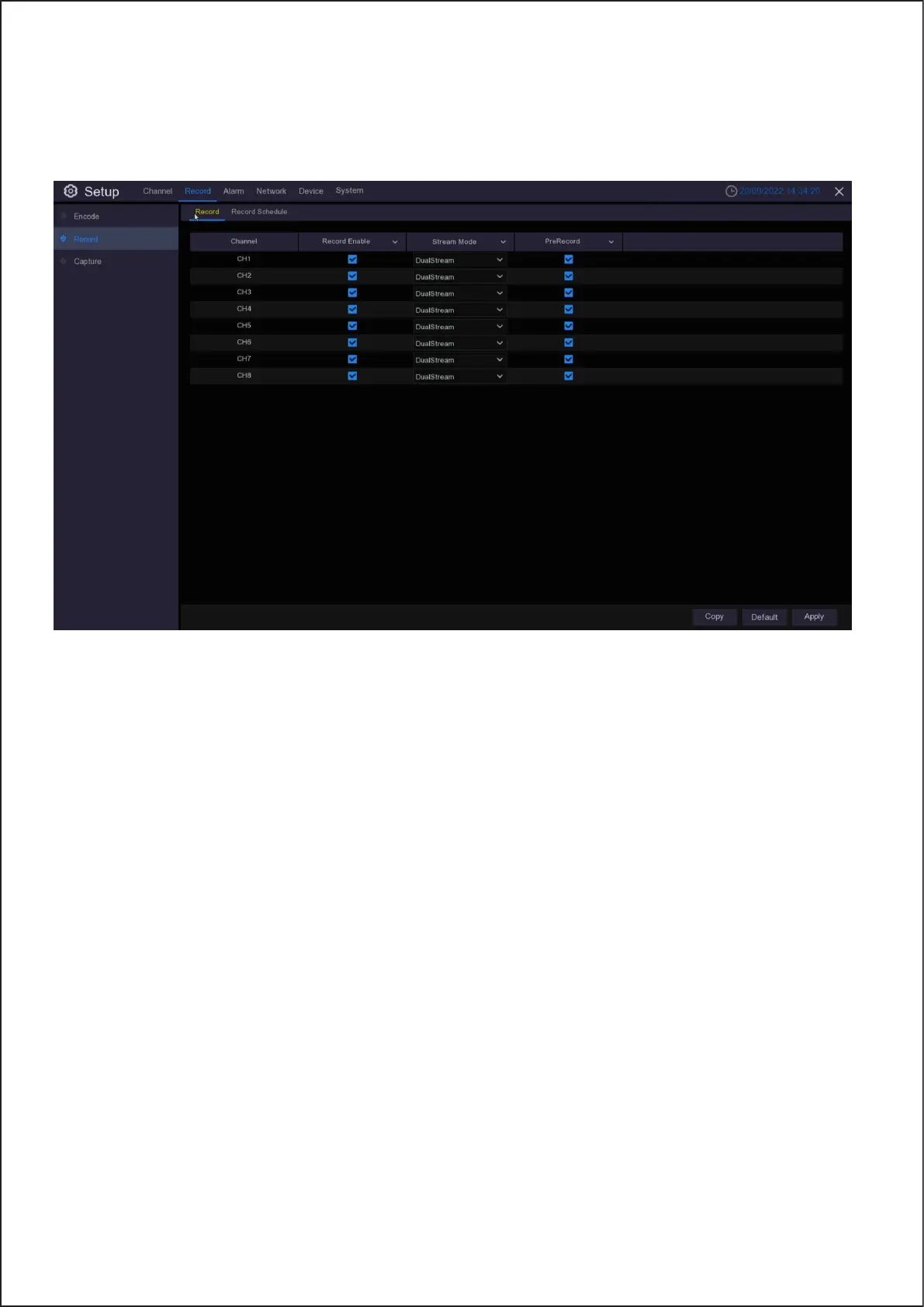 Stream Mode: Choose the recording resolution. The available options are Mainstream and DualStream.
