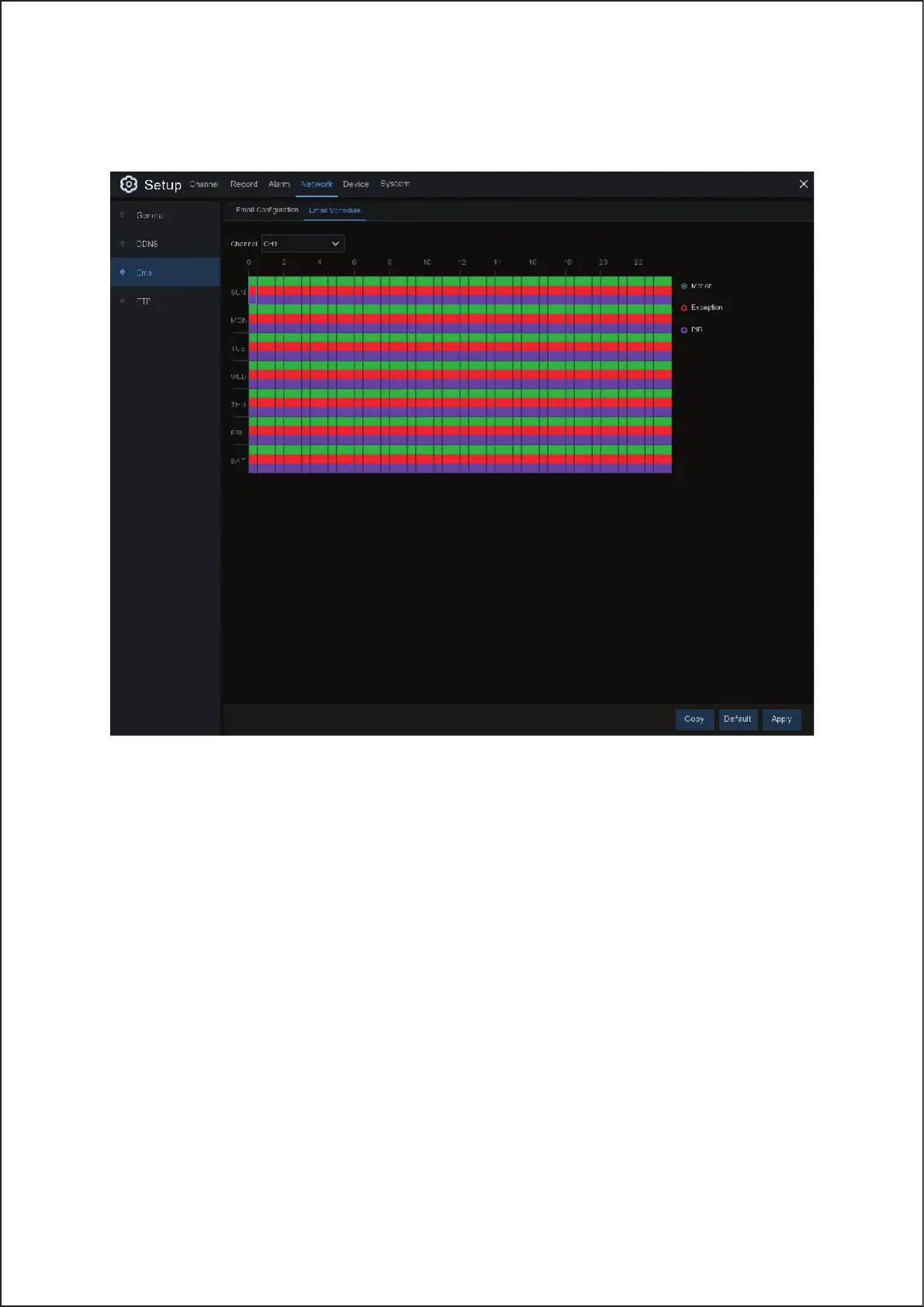 Red: Slot for Exception (HDD full, HDD error, or Video Loss).
