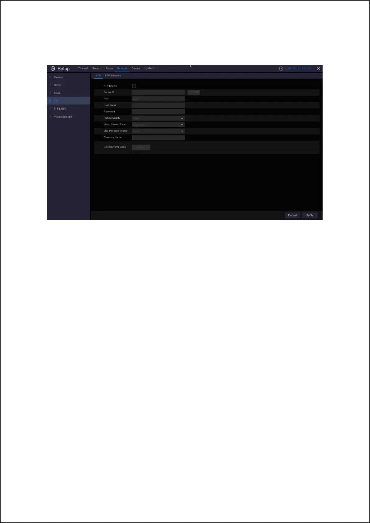 This menu allows you to enable FTP function to view and load captured snapshots from Wireless NVR to your storage