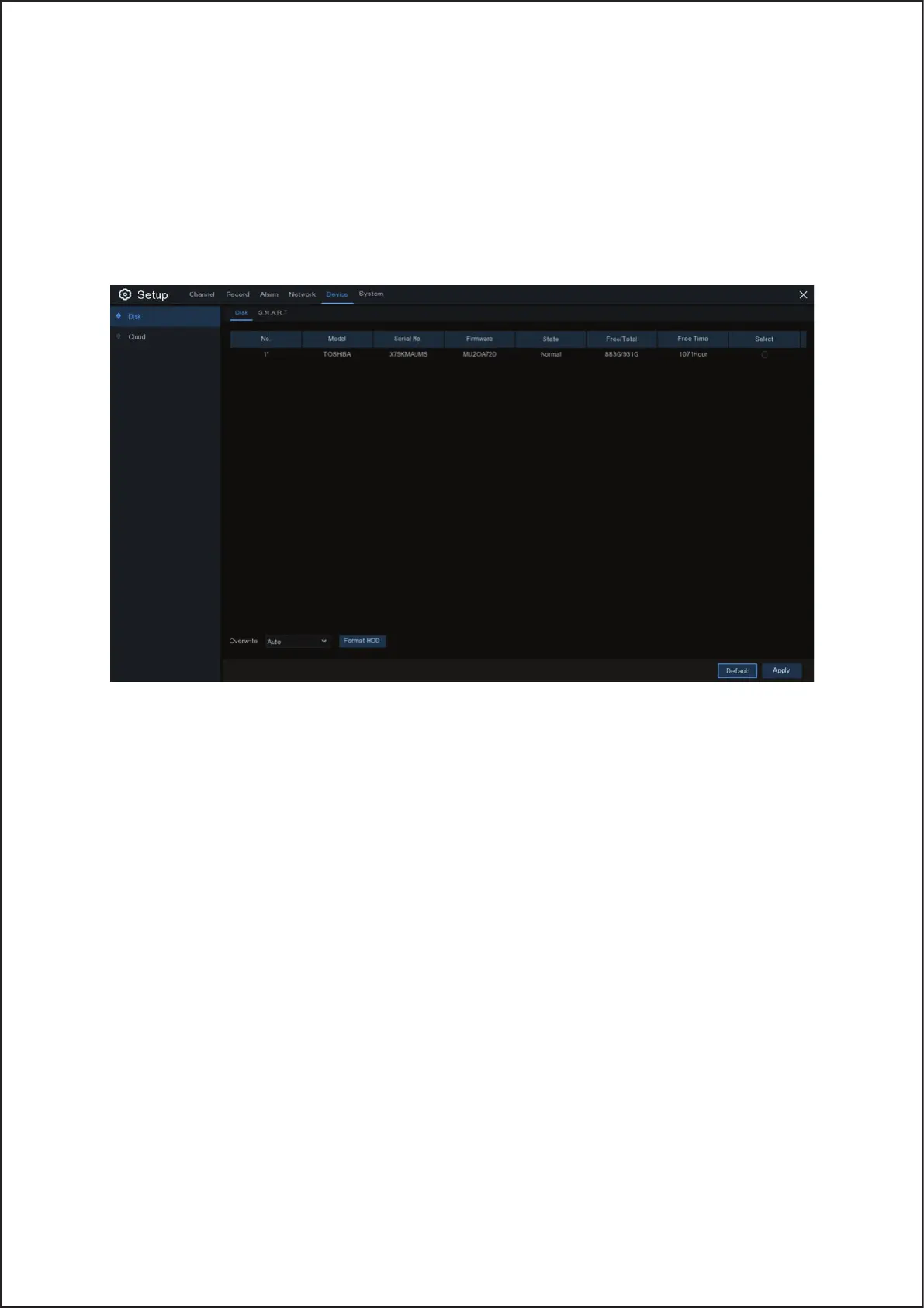 recordings, select OFF. If you have disabled this function, please check the HDD status regularly, to make sure the